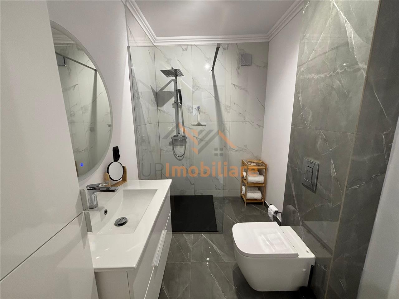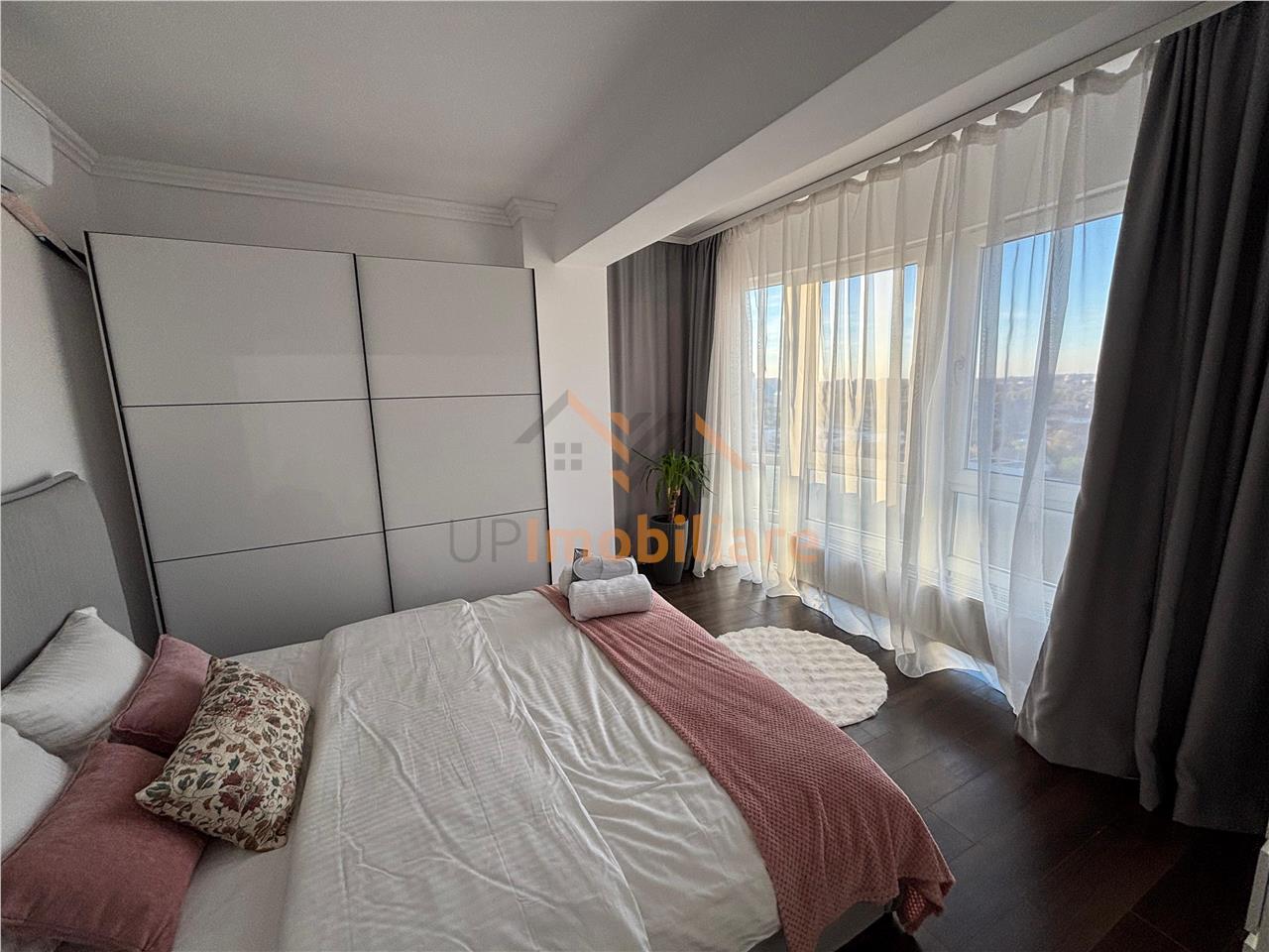 Apartamentul este situat la etajul 8 intr-un bloc nou cu 9 etaje si lift, dispune de 2 aere conditionate, masina de spalat, bucatarie utilata si mobilata complet.